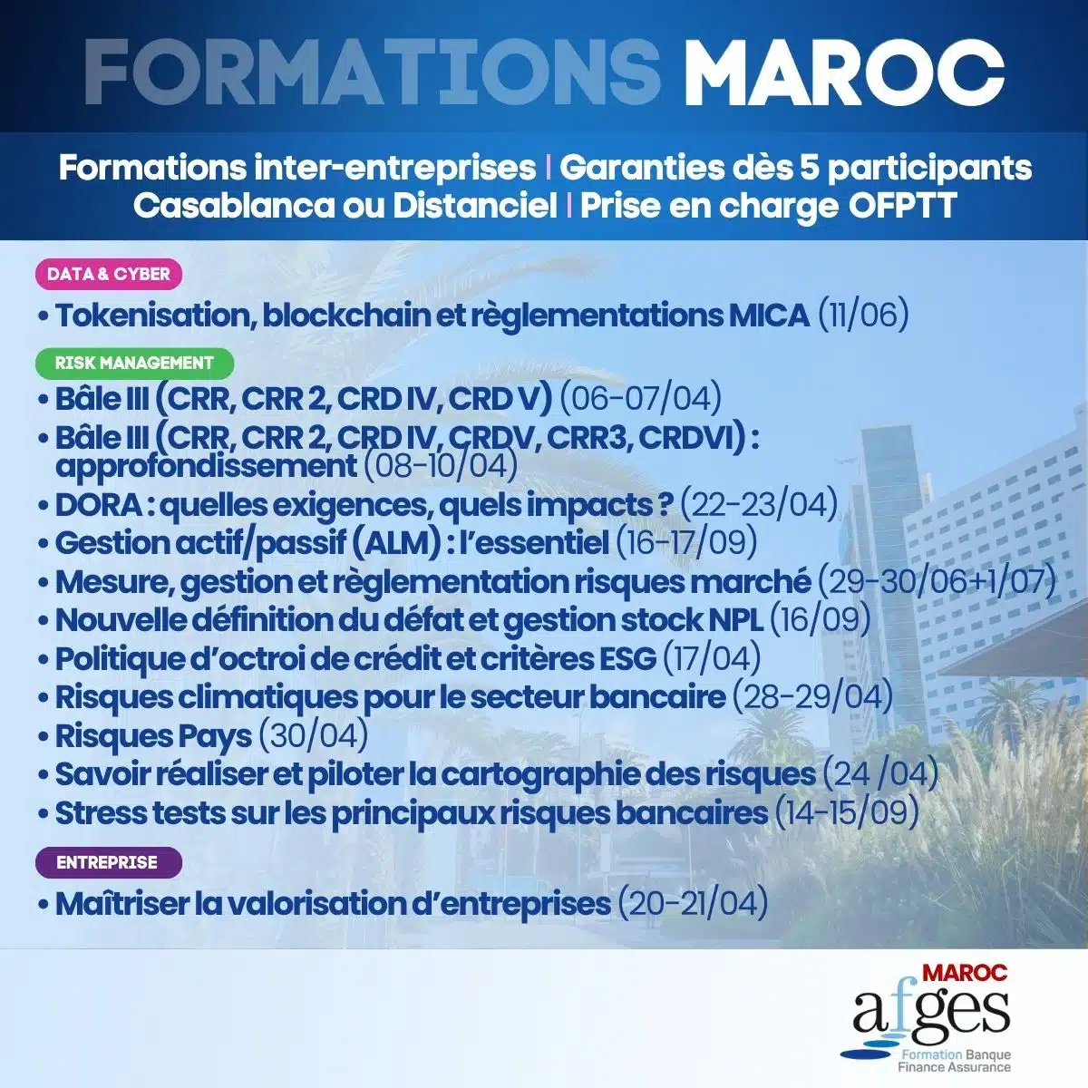 - Avoir une vision d’ensemble des enjeux autour du risque ESG et des différentes notions associées.